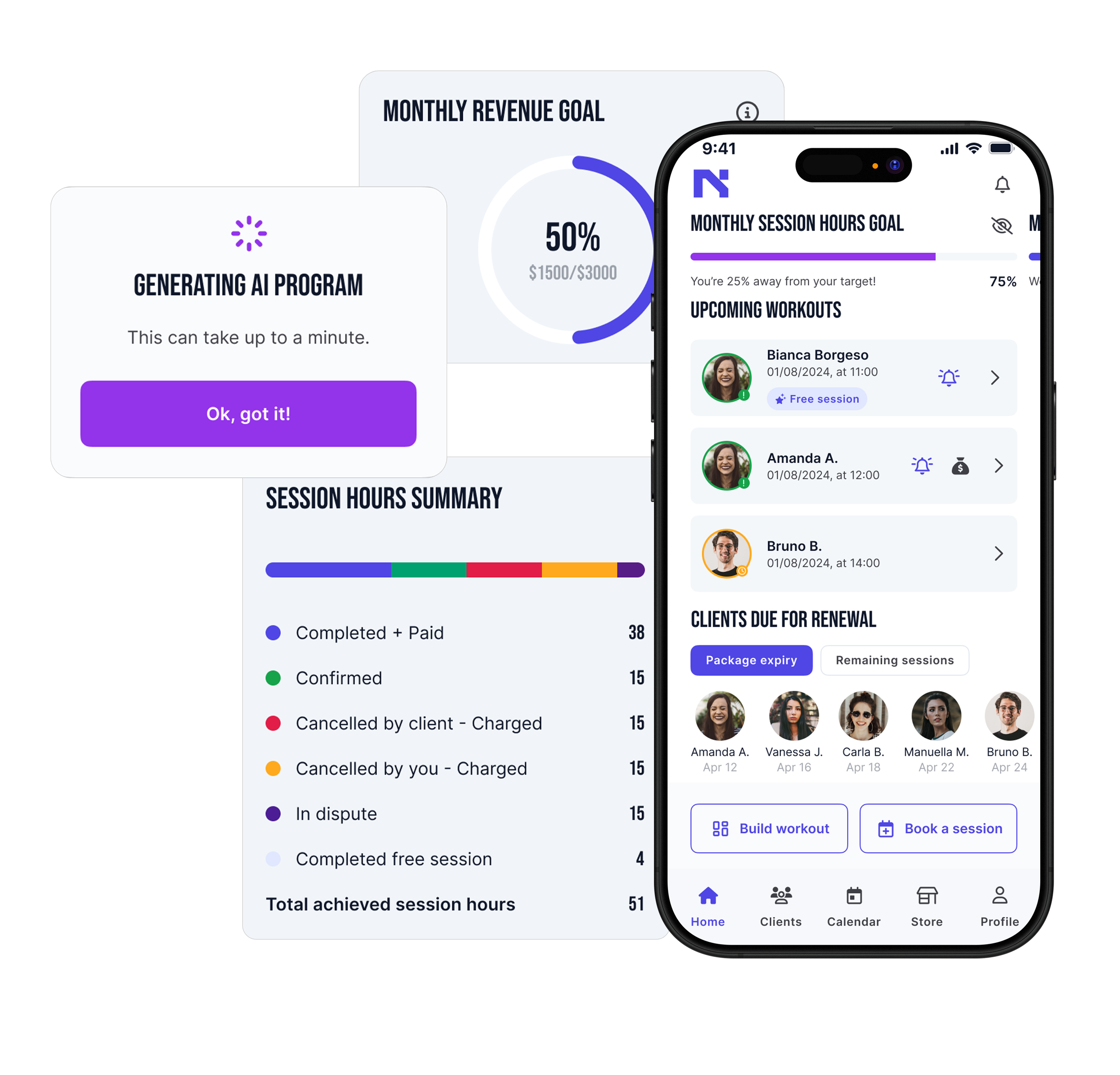 Trainers build programs on third-party apps, and you’re left guessing. No visibility. No control. The Trainer App brings everything into one place schedule, workouts, progress, nutrition - so nothing slips, and every hour counts.